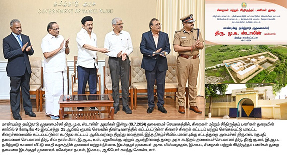 Hon'ble Chief Minister Thiru. M. K. Stalin, inaugurated Sub-jail and Chenglpetadditional Prison Buildings to the tune of Rs. 9.45 crores, thru video conferencing at Chennai on 19.07.2024