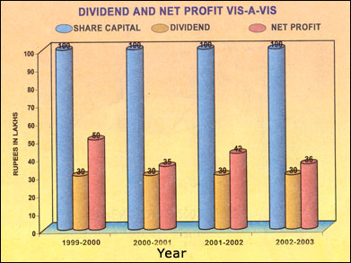 The activities of the Company during this year (2002 - 2003) ended with a net profit of Rs.35.60 Lakhs. The Company has declared a dividend of Rs.30.00 Lakhs during the year on a paid up Share Capital of Rs.100.00 Lakhs. In the last six years, the Company has paid a total of Rs.170.00 Lakhs as dividend against Rs.100.00 Lakhs Share Capital.